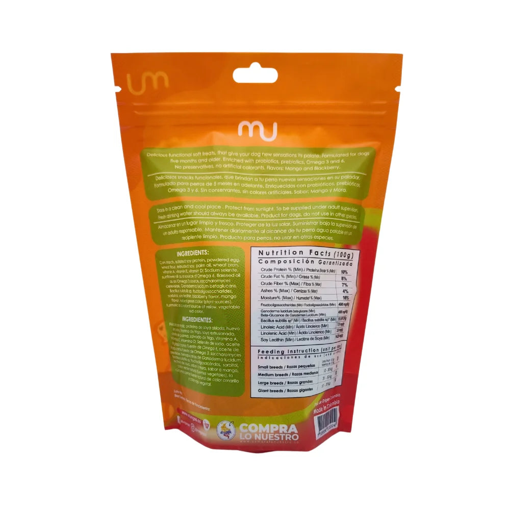 Deliciosas galletas blandas para perros tipo gourmet con sabor a frutas, que llenarán de alegría el paladar de tu mejor amigo. Galletas funcionales formuladas para perros de 5 meses en adelante. SABOR INSUPERABLE –